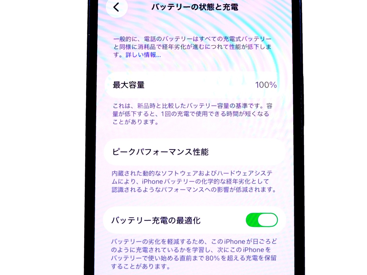 バッテリー最大容量=100%です。(バッテリー交換済)