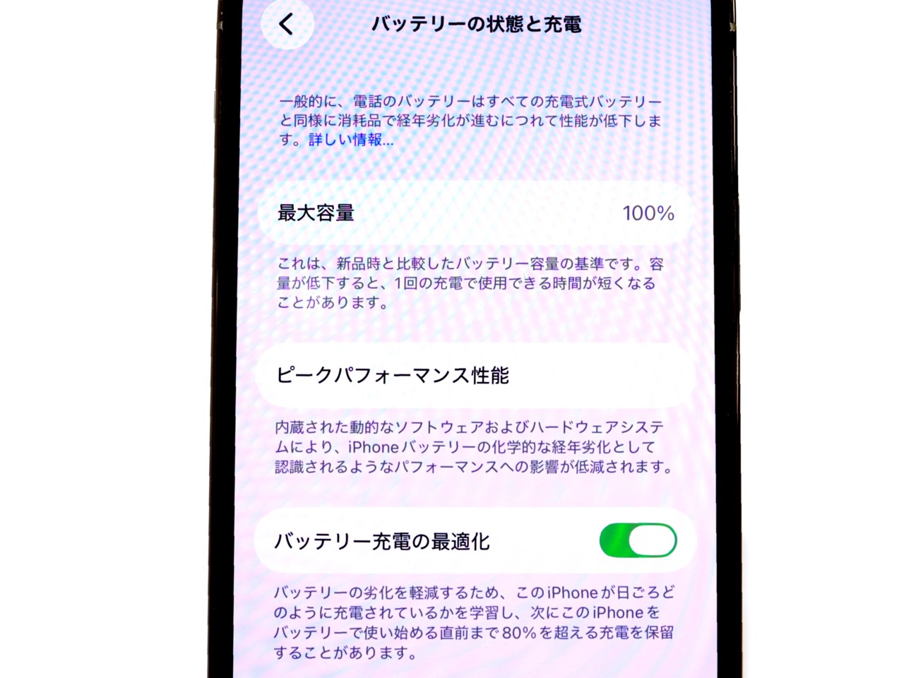 バッテリー最大容量=100%です。(バッテリー交換済)