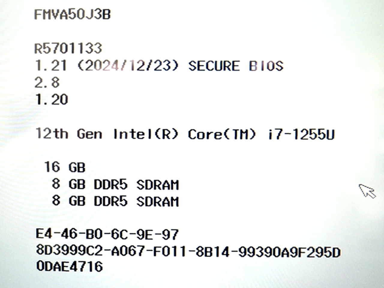 CPU : 第12世代 インテル Core i7 1255U(Alder Lake) 10コア