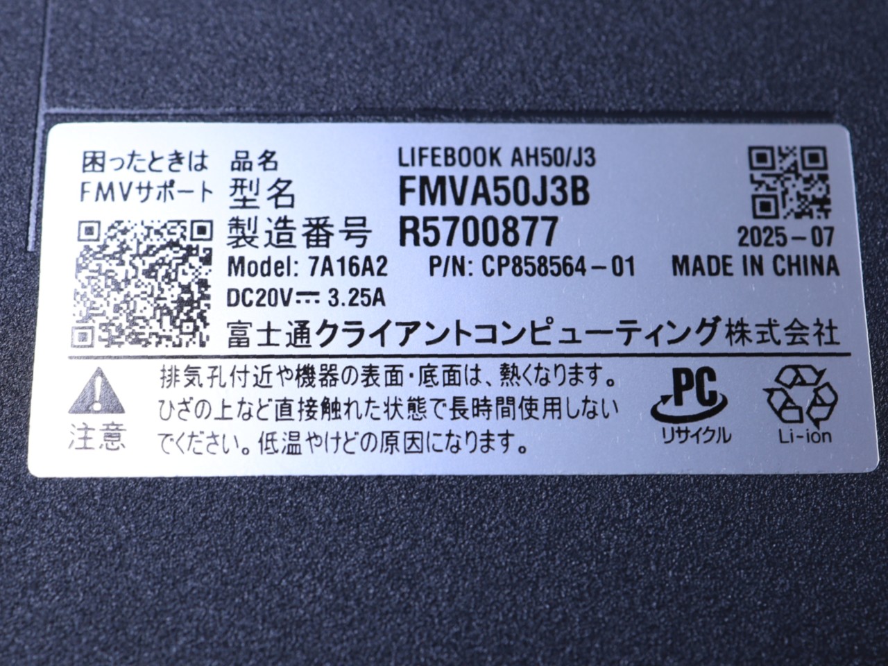FUJITSU [USED]u059623 FMVA50J3B の 商品仕様: