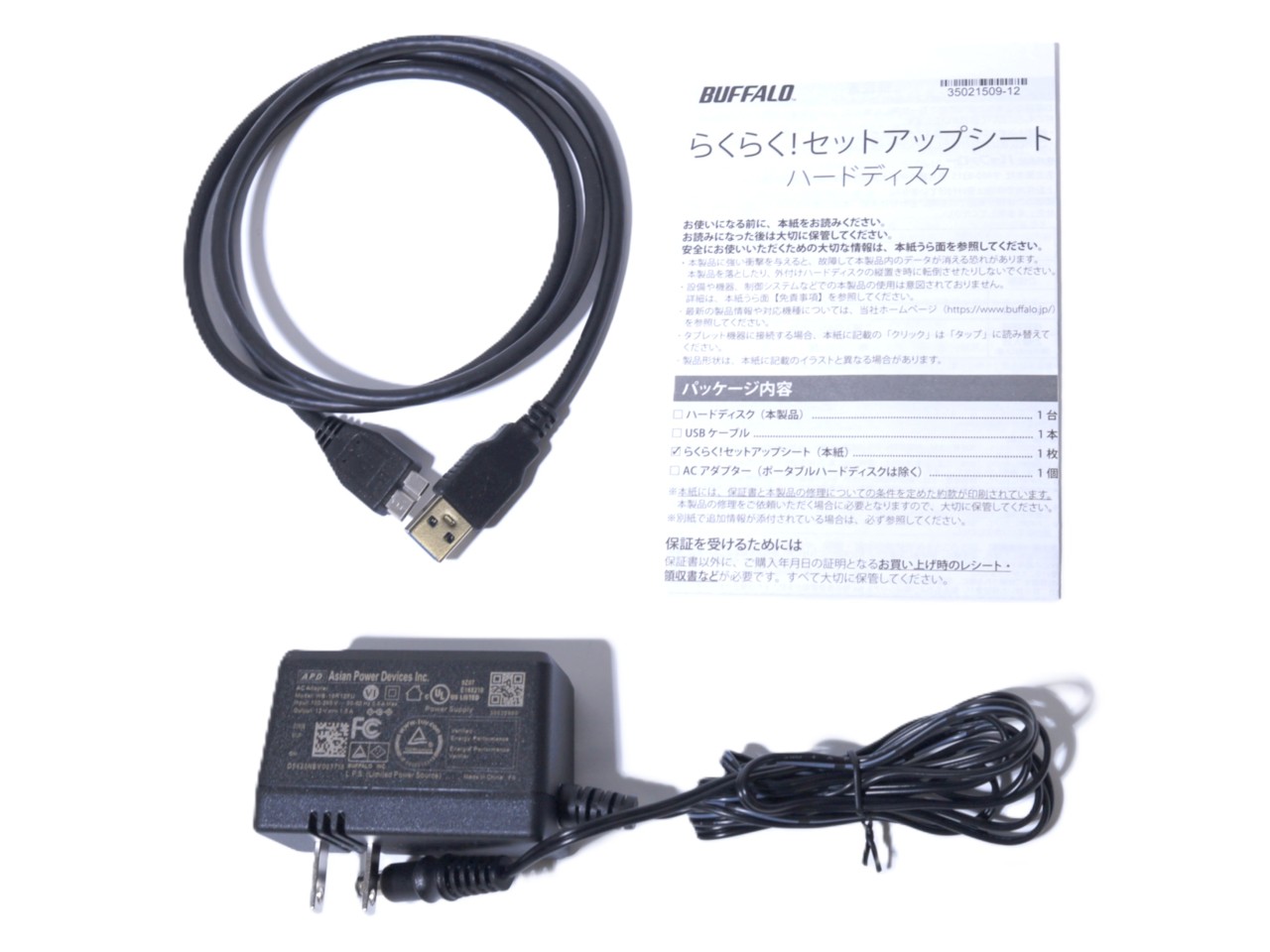 ■USB 3.2(Gen1)ケーブル(1m) ■ACアダプター ■取扱説明書(保証書) ■緩衝材/外装箱