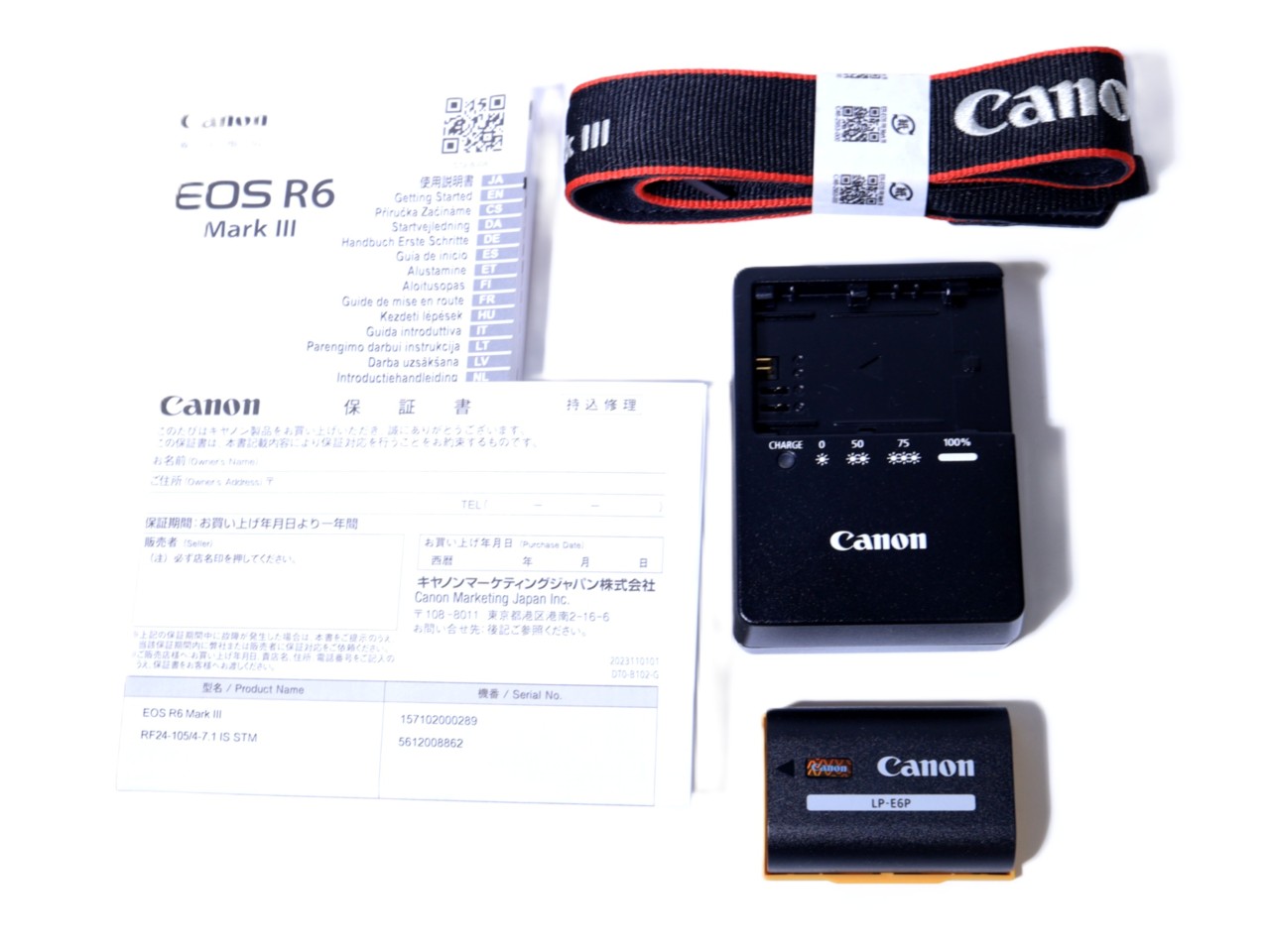 ■ボディキャップ ■ストラップ ■バッテリーパック ■チャージャー
