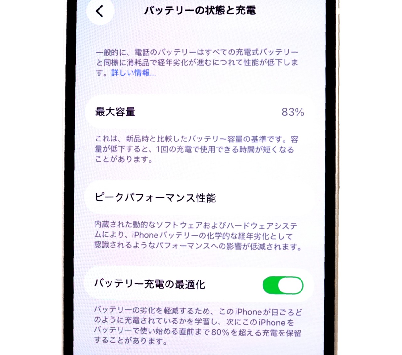 バッテリー最大容量=83%