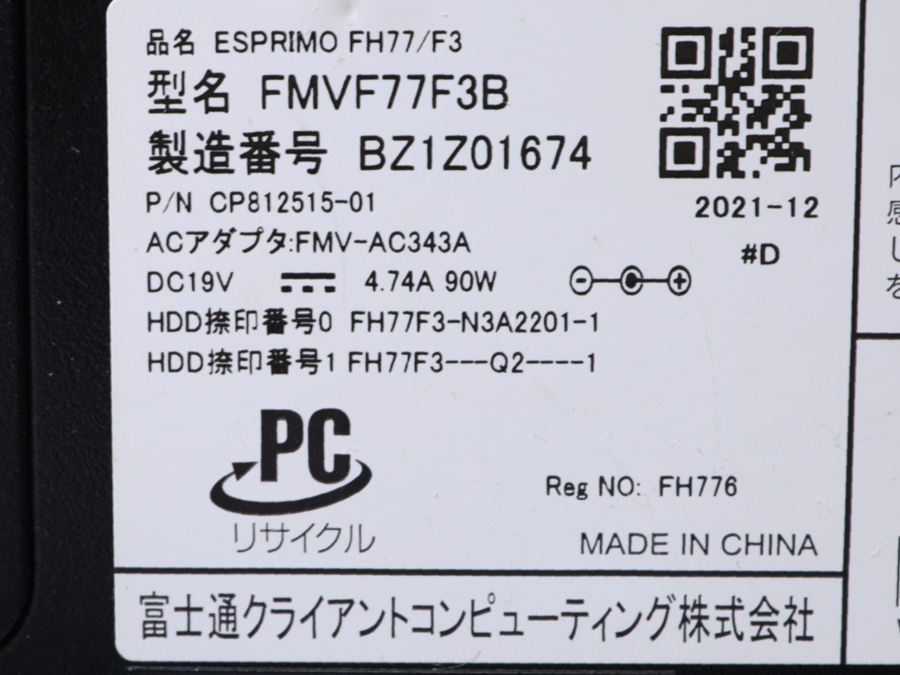 FUJITSU [USED]u059861 FMVF77F3B の 商品仕様: