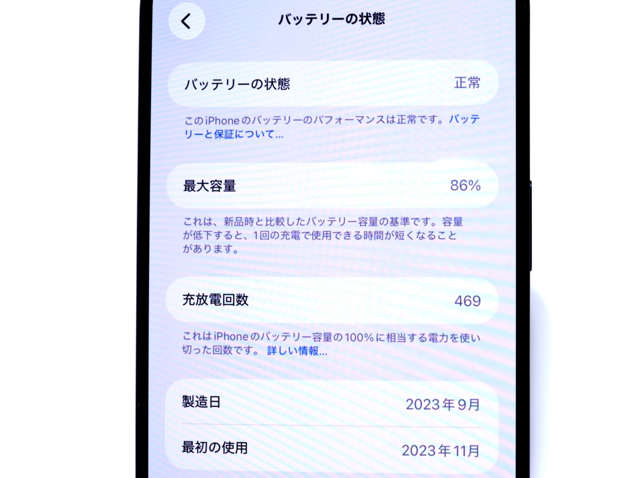 バッテリー最大容量=86%です。