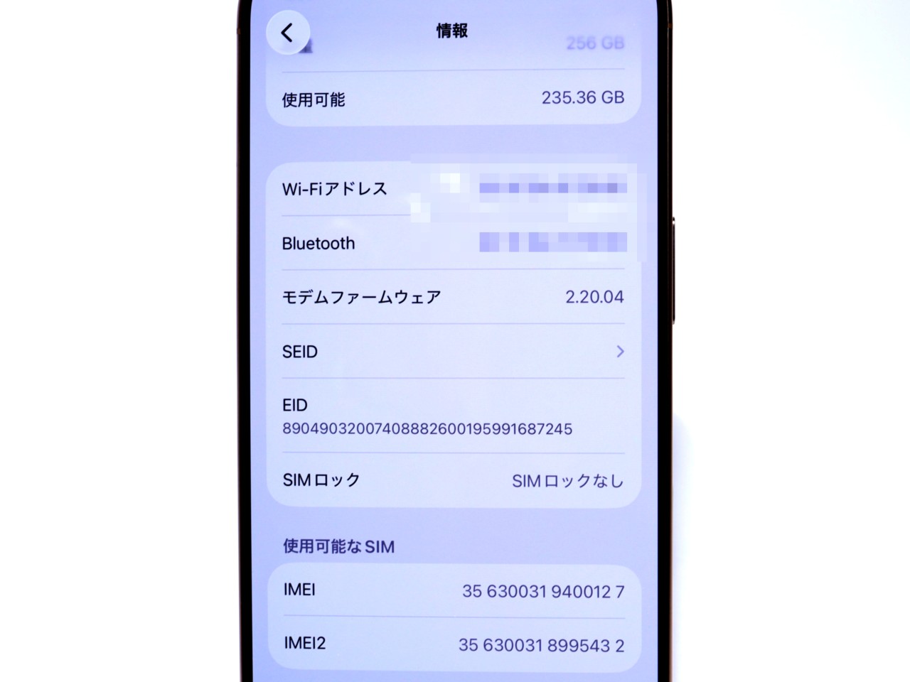 内蔵メモリ : 256GB