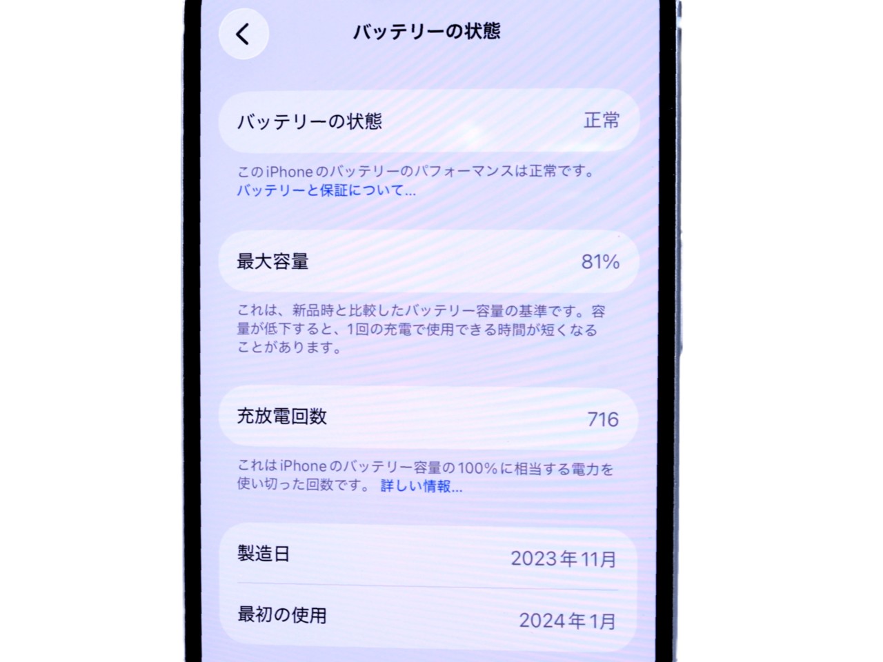APPLE [USED]u059871 iPhone15 128GB SIMフリー [ブルー] の 商品仕様: