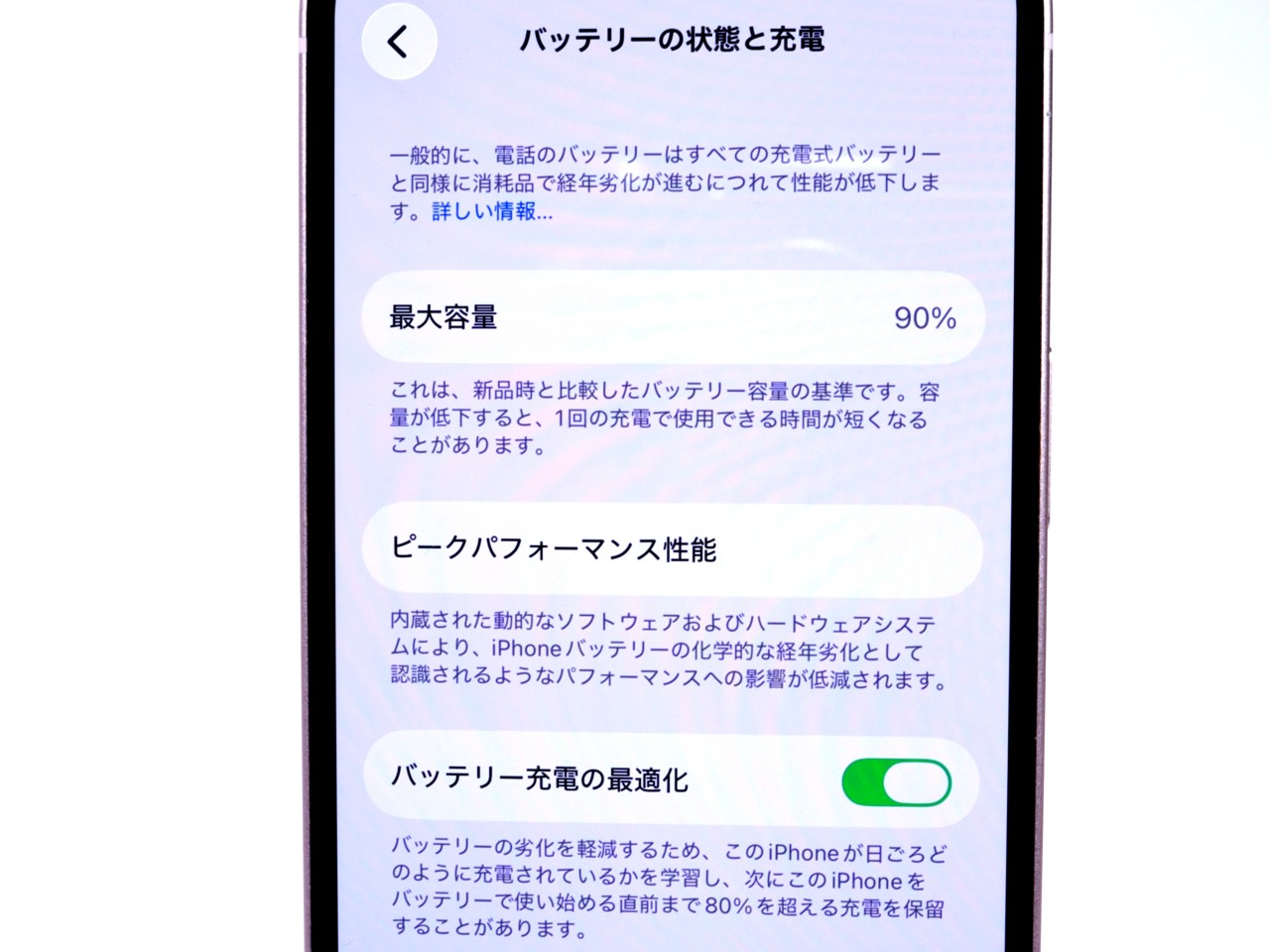 バッテリー最大容量=90%です。