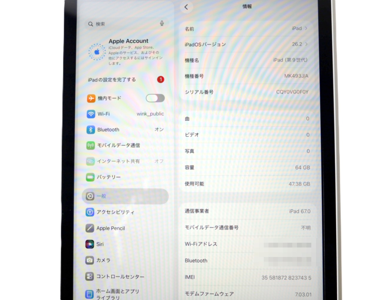 APPLE [USED]u059894 iPad 9th 64GB MK493J/A の 商品仕様: