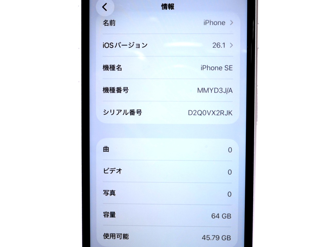APPLE [USED]u059971 iPhone SE (第3世代) 64GB SIMフリー [スターライト] の 商品仕様: