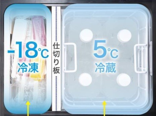 両側から開閉可能なドア付きで、2部屋を異なる温度で使える充電式保冷温庫(内容積29L) バッテリー、充電器は別売り -18度保冷~60度保温が可能