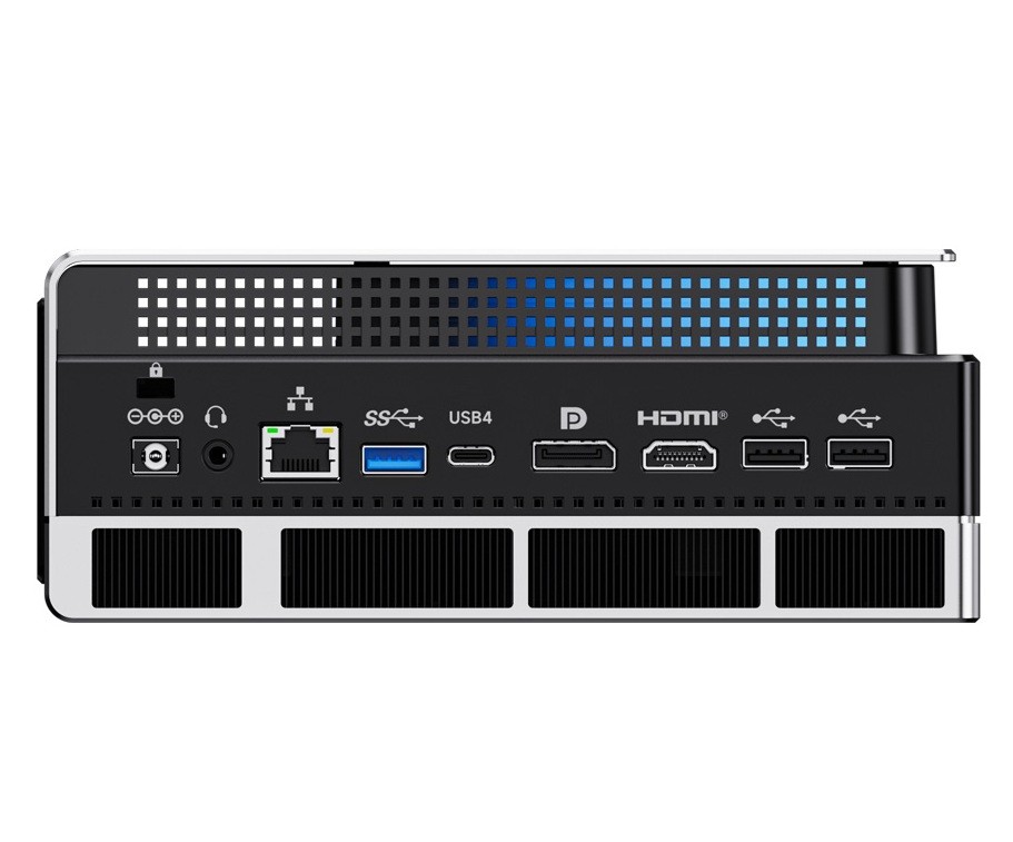リア I/O : DisplayPort 1.4 HBR3 ×1、HDMI 2.1 ×1、USB-A 3.2 Gen2 ×1、USB-A 2.0 ×2、USB Type-C (USB4.0) ×1、オーディオ (3.5mm CTIA) ×1、DC IN (5525) ×1、RJ45 2.5G LAN (8125BG) ×1