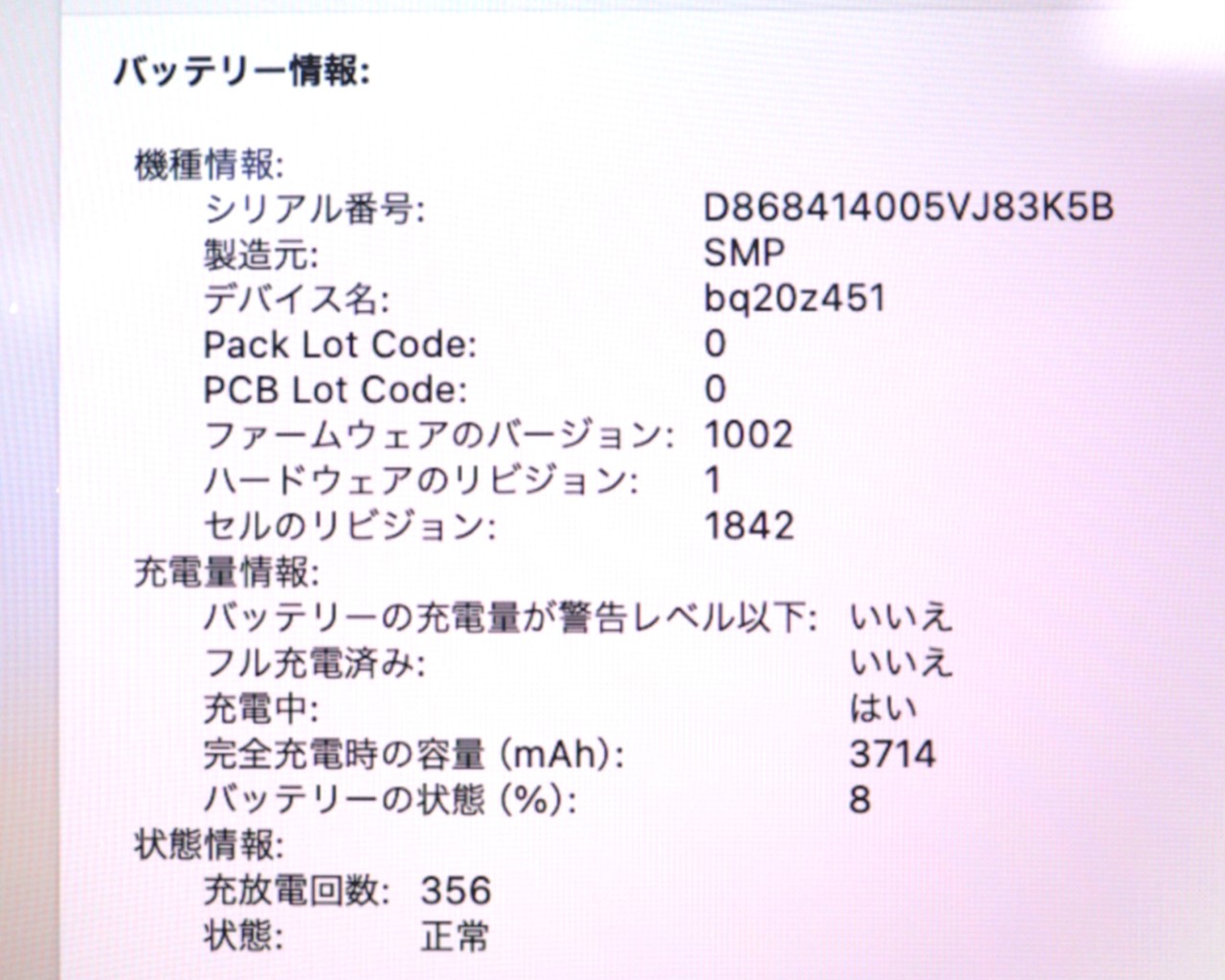 メモリ : 8GB