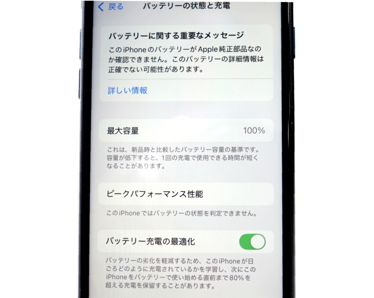 新品のバッテリーが入っていますが互換性の問題によりバッテリーの最大容量表示は正しく表示が出ません。