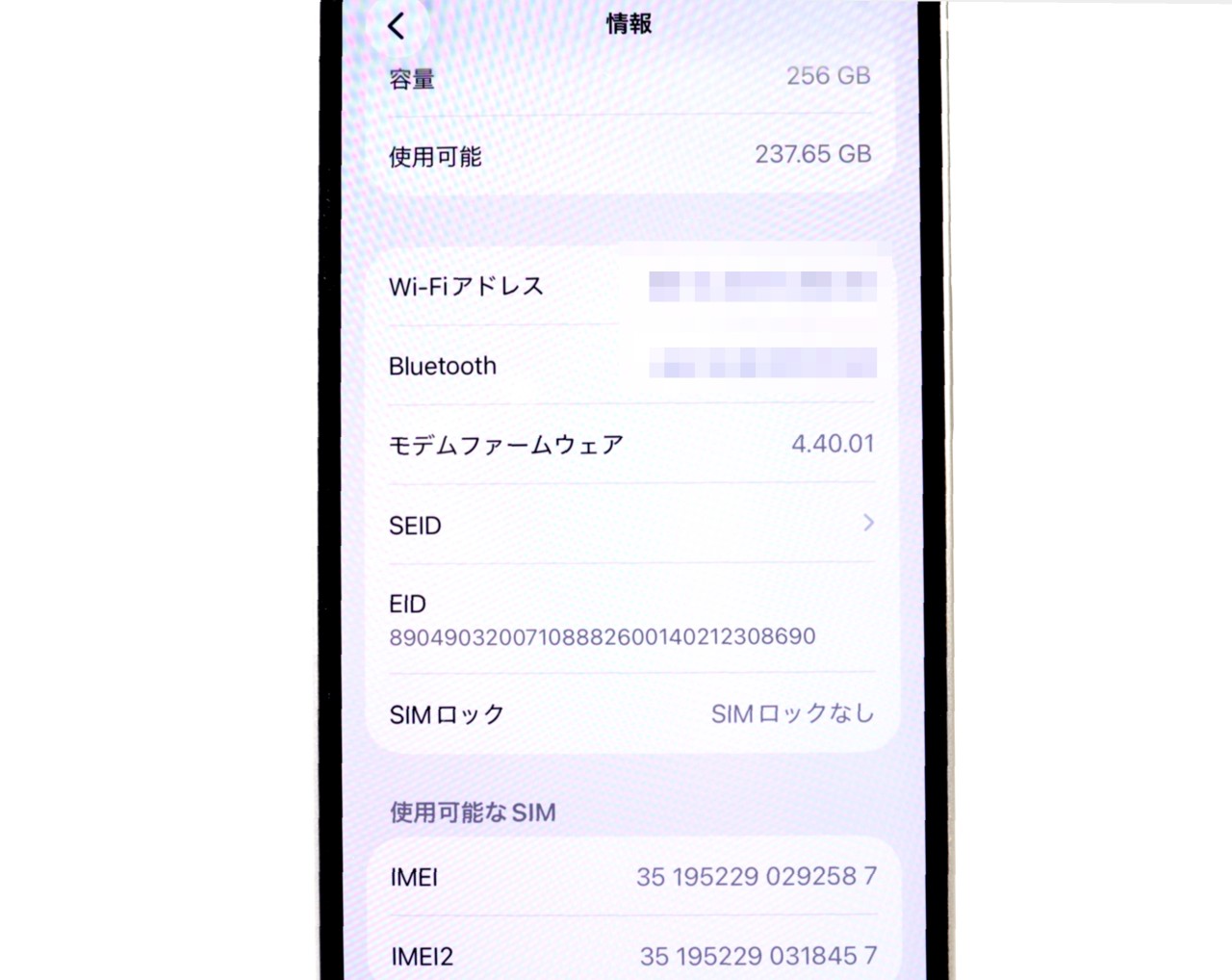 内蔵メモリ : 256GB