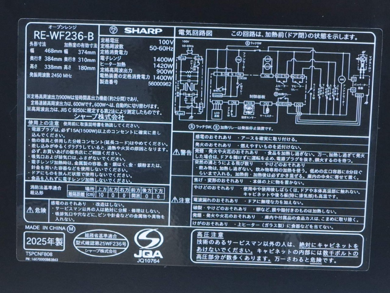 SHARP [USED]u060265 RE-WF236-B の 商品仕様: