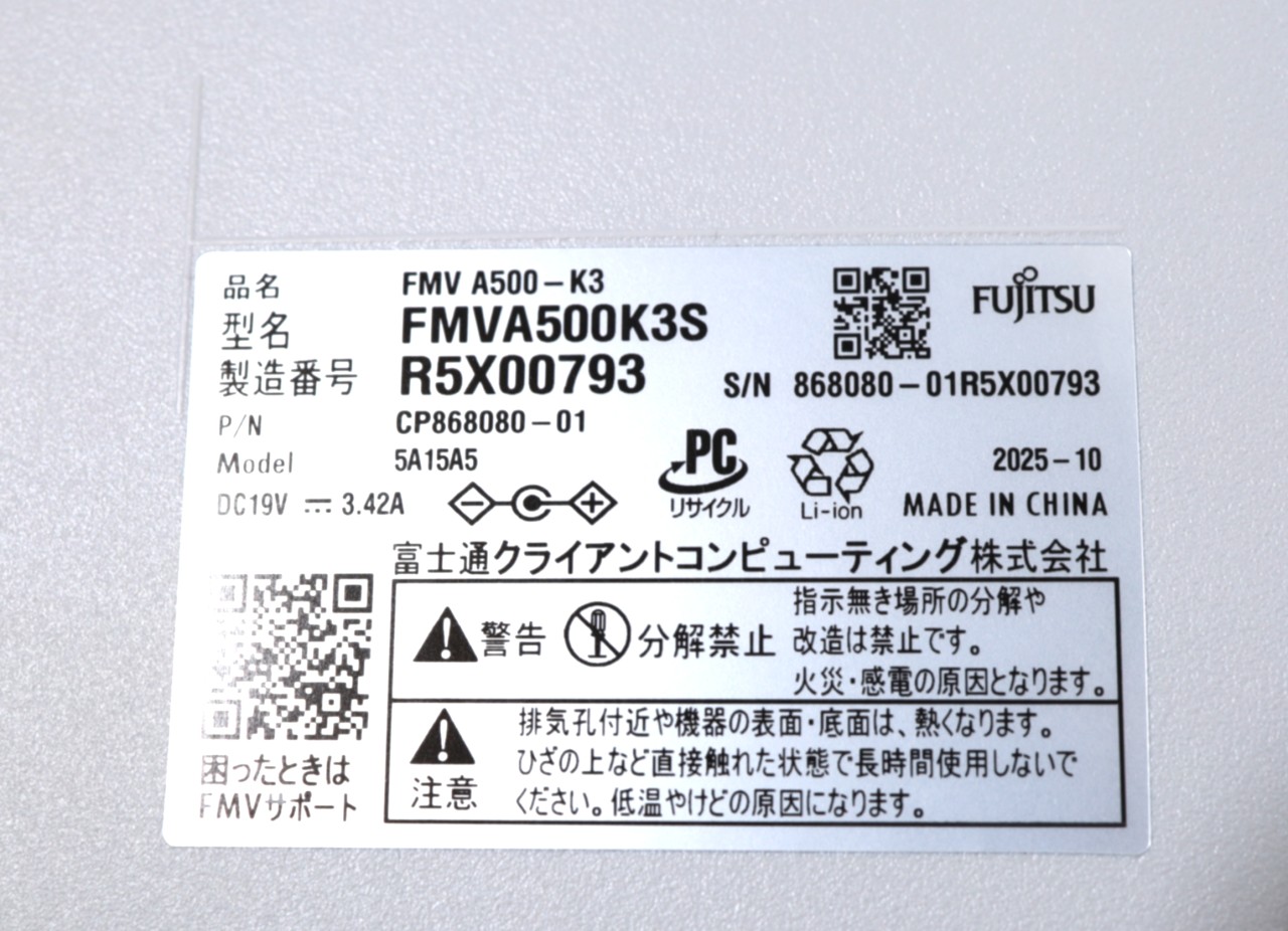 FUJITSU [USED]u060310 FMVA500K3S の 商品仕様: