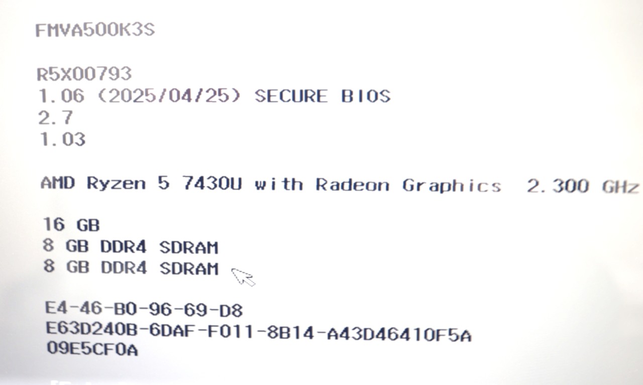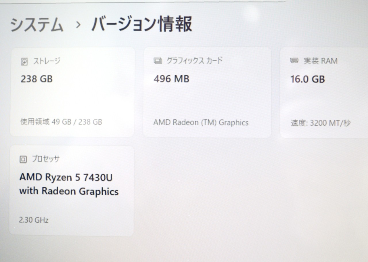 CPU : AMD Ryzen 5 7430U 2.3GHz/6コア