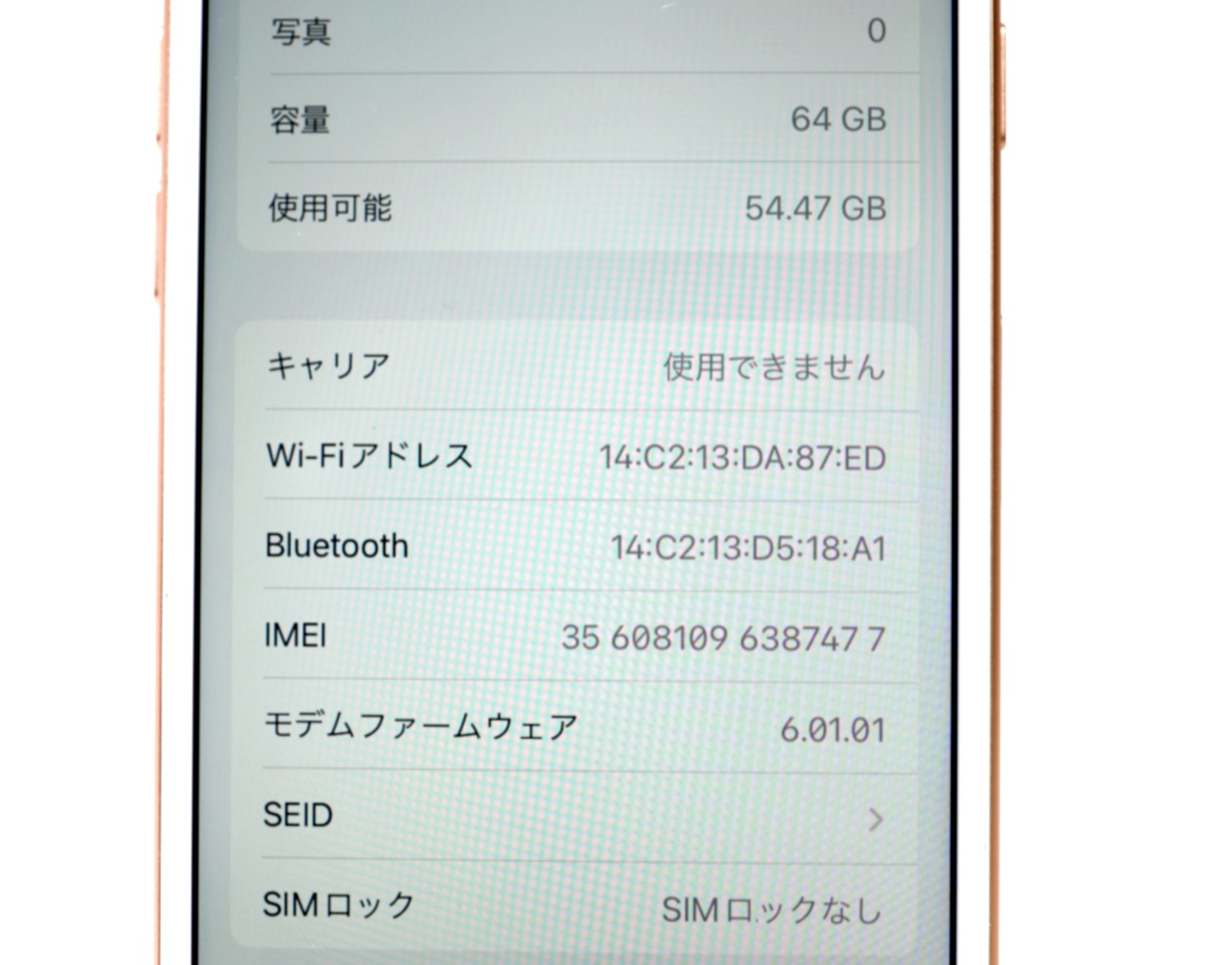 APPLE [USED]u060429 iPhone8 64GB SIMフリー [ゴールド] の 商品仕様: