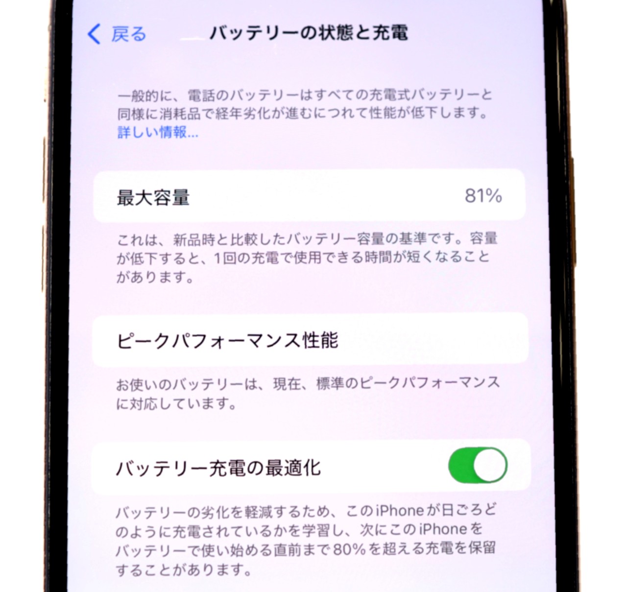 バッテリー最大容量=81%です。