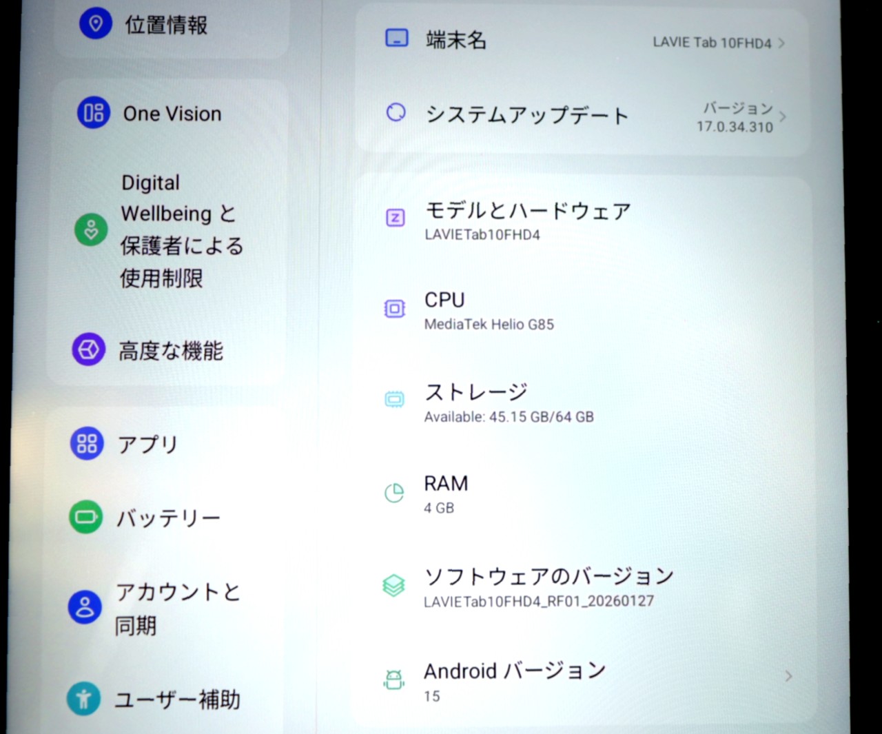 ストレージ容量 : 64GB メモリ容量 4GB
