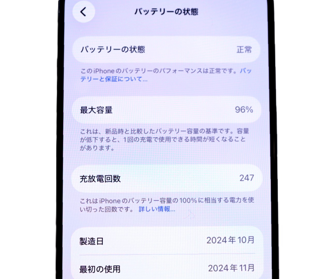 バッテリー最大容量=96%