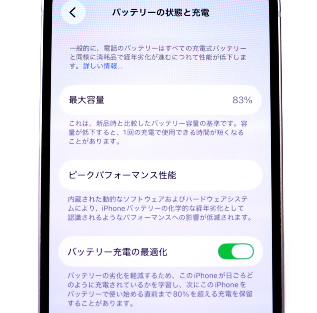 バッテリー最大容量=83%