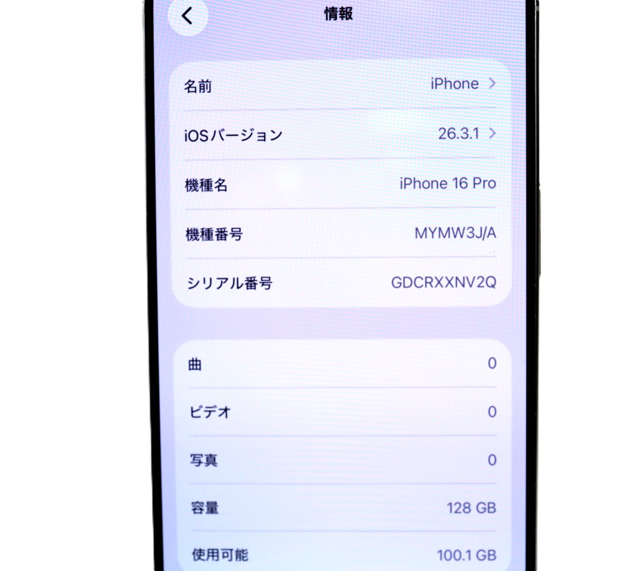 - [USED]u060498 iPhone16 Pro 128GB SIMフリー [ホワイトチタニウム]