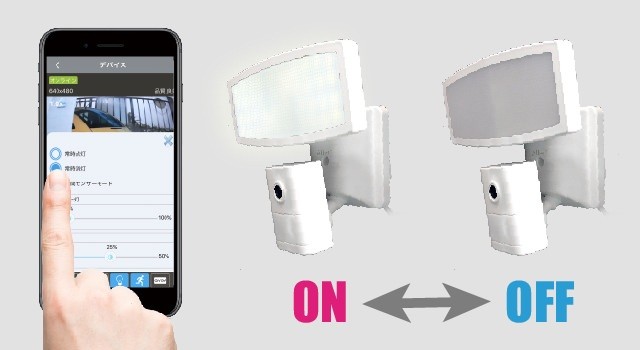 センサーライトにカメラを搭載 スマートフォンから映像確認