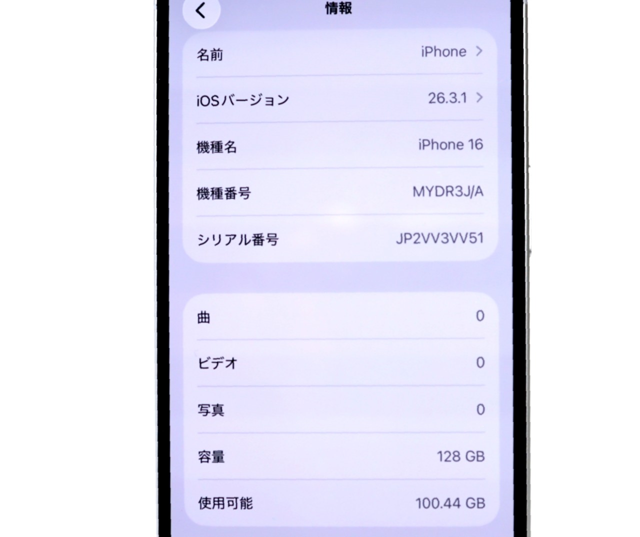 - [USED]u060562 iPhone16 128GB SIMフリー [ホワイト]