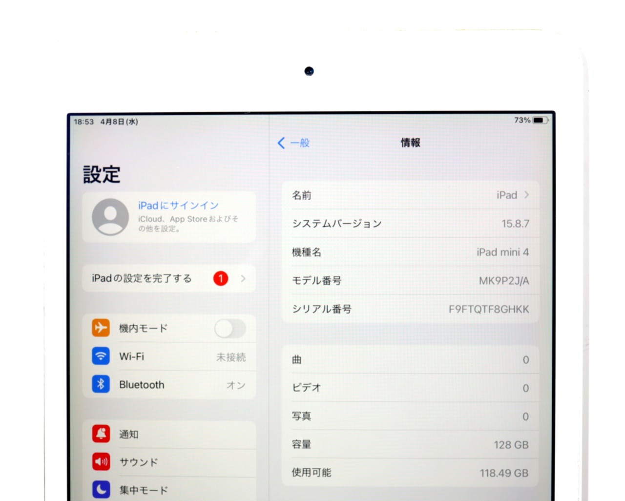APPLE [USED]u060568 iPad mini4 Wi-Fiモデル 128GB MK9P2J/A [シルバー] の 商品仕様:
