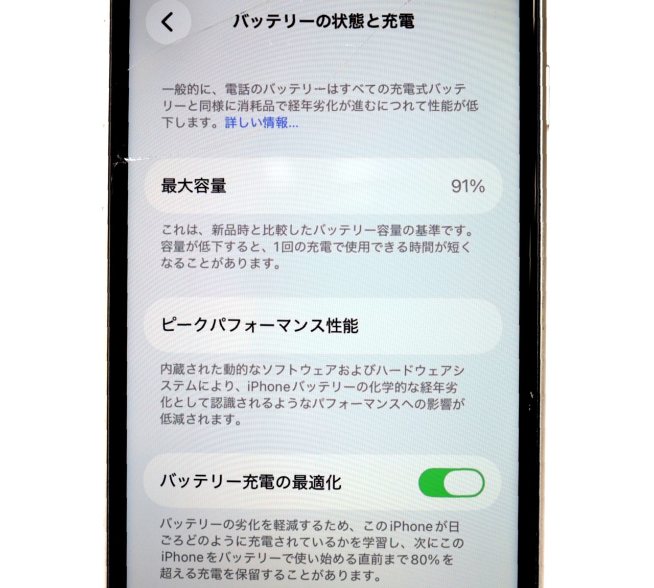 バッテリー最大容量=91%