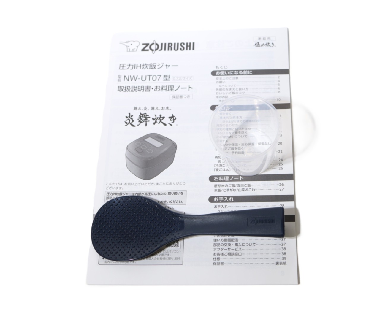 ■ 立つしゃもじ ■計量カップ ■取扱説明書 ■緩衝材/外装箱