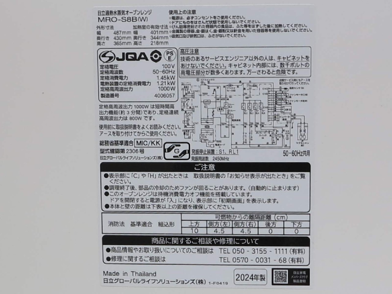 HITACHI [USED]u060648 MRO-S8B-W の 商品仕様: