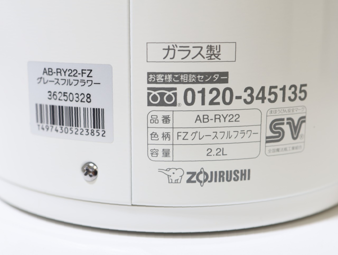 ZOJIRUSHI [USED]u060656 AB-RY22-FZ の 商品仕様: