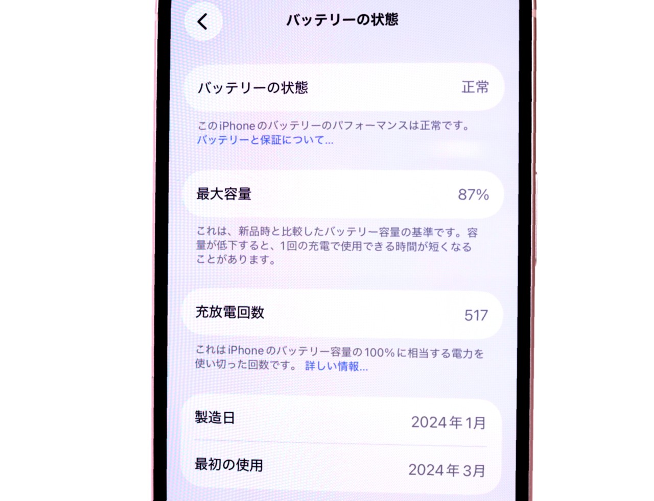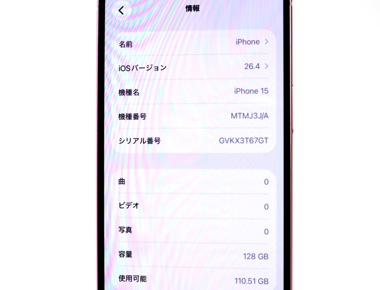 APPLE [USED]u060701 iPhone15 128GB SIMフリー [ピンク] の 商品仕様: