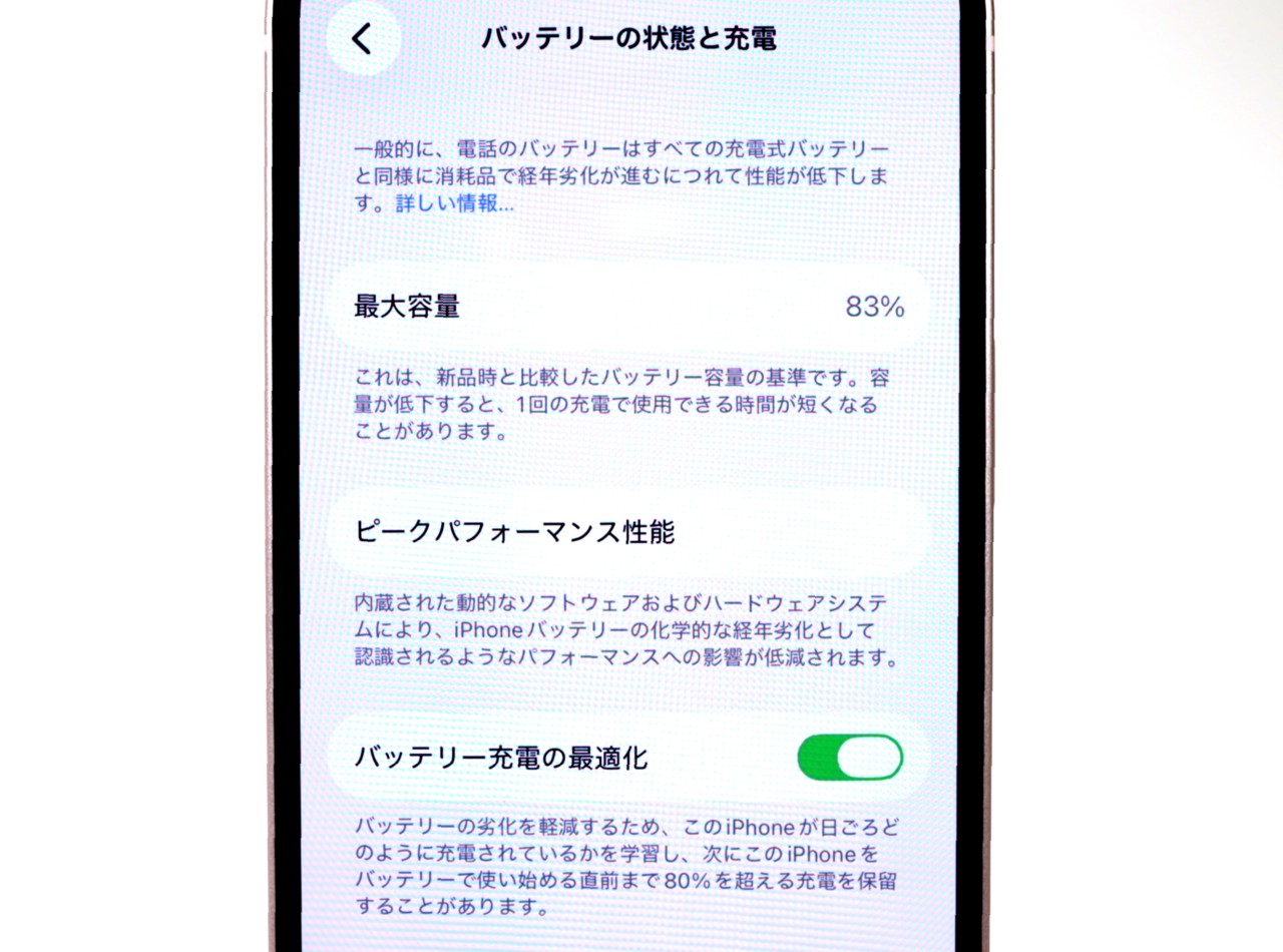 バッテリー最大容量=83%