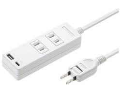 USB AポートとType-Cの2種類を搭載しており、最新のモバイル機器の充電も可能なタップ 2P・2個口・2m