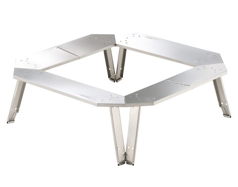 ワンアクションで簡単組立!軽量&丸洗い可!熱性に優れた、オールステンレス製の囲炉裏テーブル 中央にたき火台やグリルを設置することで、チェアに座りながらたき火やBBQを楽しめる