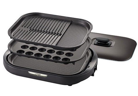 「深型穴あき焼肉プレート」「深型平面プレート」「区切り線つきたこ焼きプレート」が付属するホットプレート