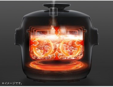 調理機能 : 無水調理、温め直し機能、かきまぜ機能、蒸し調理、炊飯機能