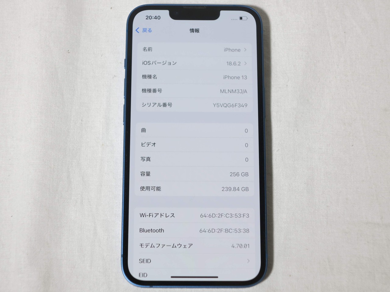 APPLE [USED]u058728 iPhone13 256GB SIMフリー [ブルー] の 商品仕様: