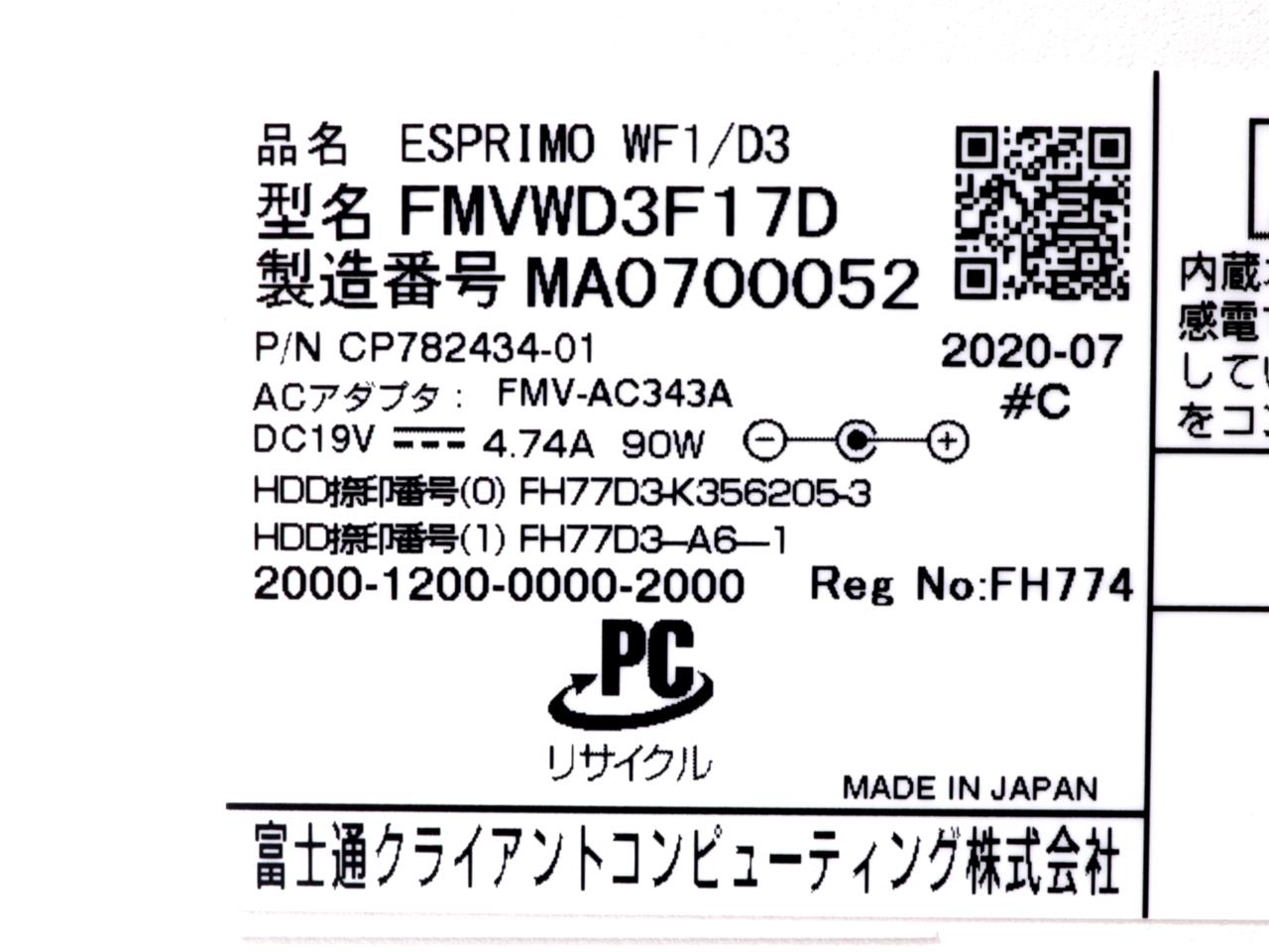 - [USED]u058733 FMVWD3F17D ESPRIMO カスタムモデル(メモリ増量 16GB)