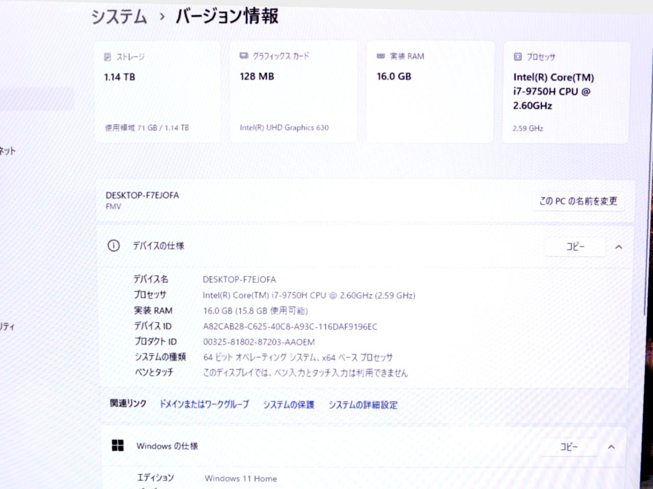 CPU種類 : Core i7 9750H(Coffee Lake Refresh)