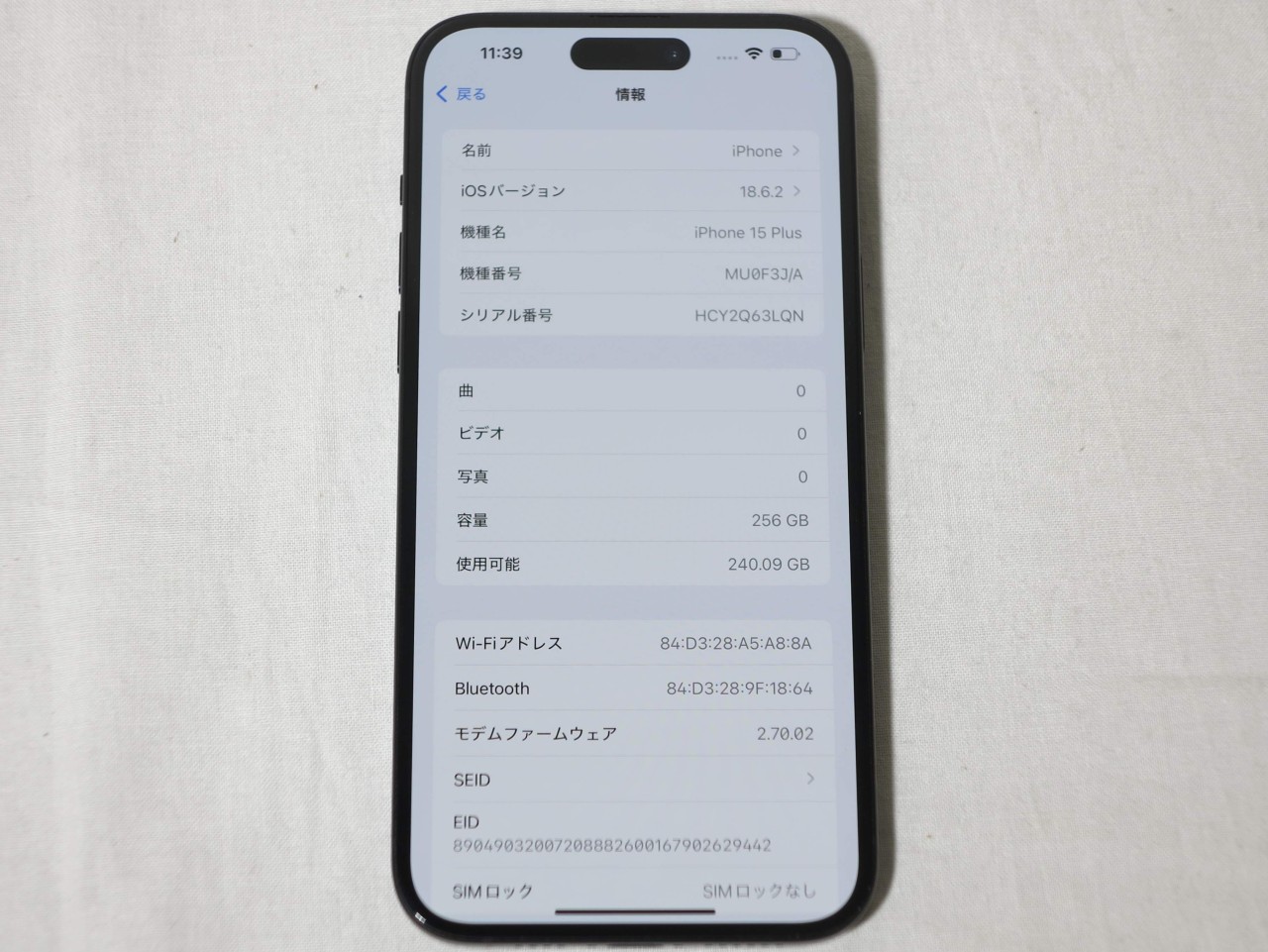 - [USED]u058744 iPhone15 Plus 256GB SIMフリー [ブラック]