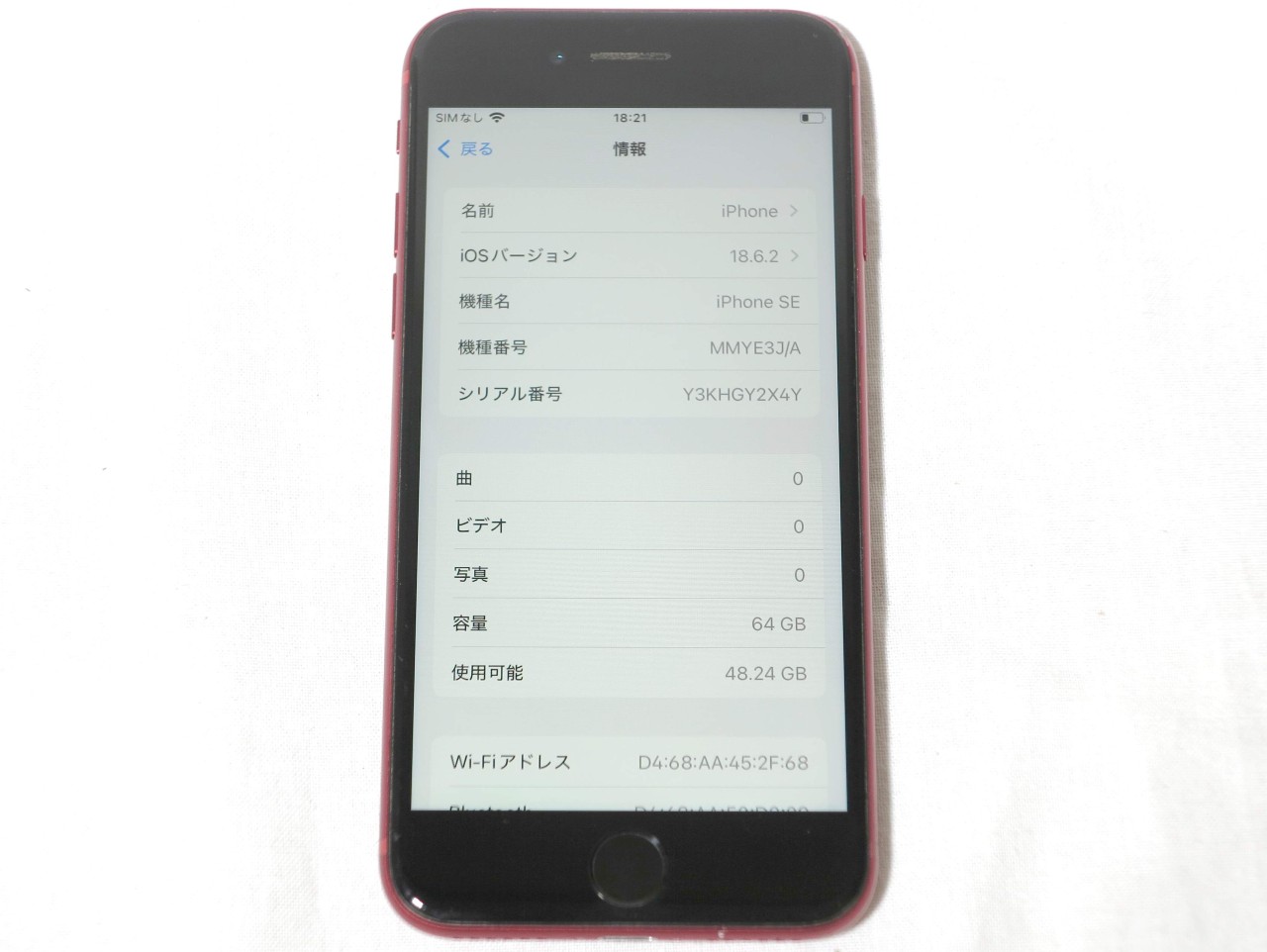 APPLE [USED]u058760 iPhoneSE 3rd 64GB SIMフリー [レッド] の 商品仕様: