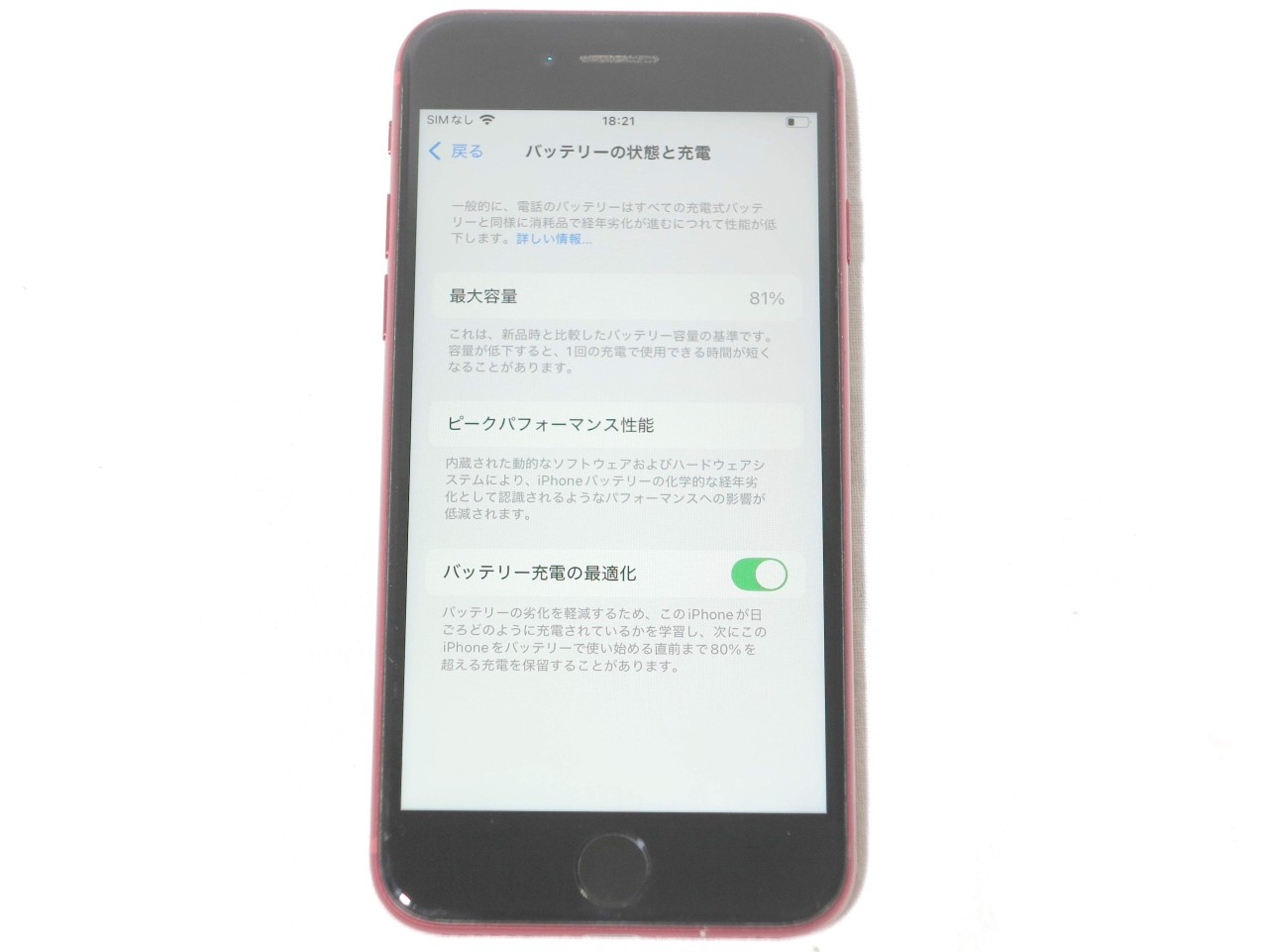 バッテリー最大容量表示=81%です。