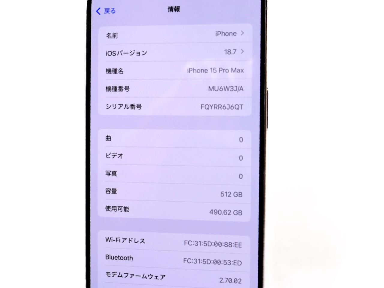 - [USED]u058764 iPhone15 Pro MAX 512GB SIMフリー [ナチュラルチタニウム]