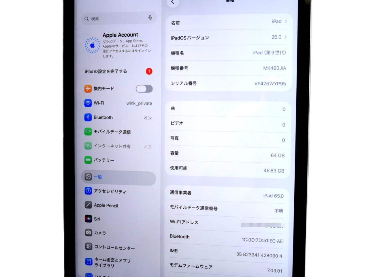 APPLE [中古]iPad iPad 10.2インチ 第9世代 Wi-Fi+Cellular 64GB 2021年秋モデル MK493J/A SIMフリー [シルバー]