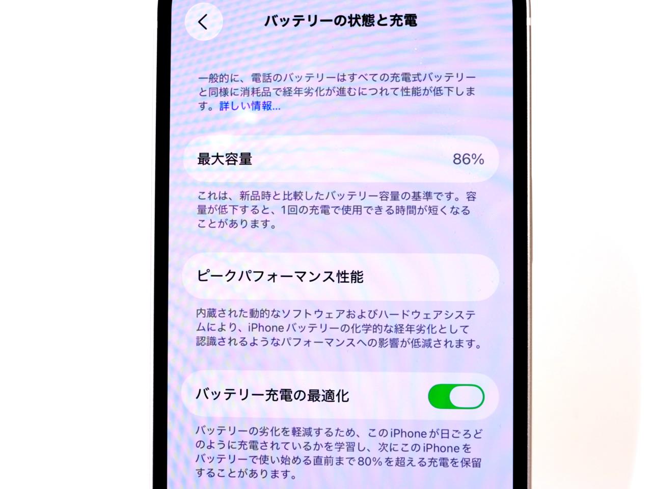 バッテリー最大容量=86%です。 IMEIチェック=docomo【◯】